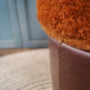 Dieser Kunstleder-Hocker ist ein Original aus der DDR, sehr wahrscheinlich aus den 1970er Jahren. Produziert wurde er in der „Vereinigten Sitzmöbelindustrie Neuhausen“, welche vormals „Hans Ettig Söhne“ hieß. Bekannt geworden ist sie, wie es der Name schon verrät, durch Stühle und das ab 1946 bis 1989. Dieses Modell befindet sich in einem sehr guten Zustand mit leichten Gebrauchsspuren, die wirklich kaum auffallen. „Raphael“ ist ein sehr bequemer Vintage-Sitzhocker, der nicht nur optisch einiges hermacht, sondern auch praktisch ist! Denn unter seinem sehr kuscheligen, orangefarbenen Deckel befindet sich ein Stauraum, der wahrscheinlich für Wäsche gedacht war, aber natürlich auch für alles Andere benutzbar ist! Der Sitzbezug ist leicht abzuziehen und somit waschbar!