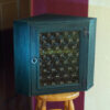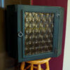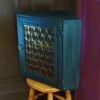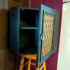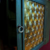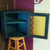 Nach dem Umbau einer recht altmodischen Küche sollte u.A. dieser Eckschrank weg geschmissen werden. Zum Glück wurden wir vorher gefragt ob man diesen noch aufhübschen kann…und natürlich kann man!  Nach dem Putzen und auseinanderlegen des Schranks wurde das zerstörte Furnier entfernt, der Griff, die Scharniere und Beschläge poliert und nicht zuletzt das Holz mit grüner Kreidefarbe gestrichen. Dazu noch ein schwarzes Wachs um den Shabby-Look hervorzuheben und alles zu versiegeln. Die Glasscheibe hebt sich dadurch besser ab und strahlt in einem Orange-Gelb, welches alles warm abrundet.