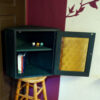 Der Schrank ist natürlich zum Aufhängen geschaffen worden und die Halterungen sind an der Rückseite. Es spricht aber auch nichts dagegen ihn nur abzustellen. Die Tür schließt leicht und hält durch einen kleinen Magneten auch gut geschlossen.